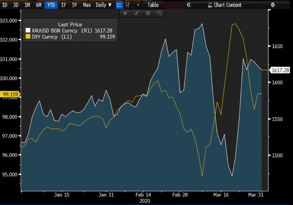 Gold was liquidated due to the wider and rapid spread of the coronavirus across the globe. The precious metal is viewed as a highly liquid asset and investors were in a need of cash due to margin calls and other liquidity requirements. The greenback and the US dollar have therefore started to diverge from each other. COVID-19-induced liquidity issues caused the yellow metal to plunge to a low of $1,471.24.