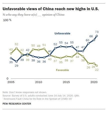 The Trump administration had a tough stance against China which had bode well with a majority of Americans. As per Pew Research Center: