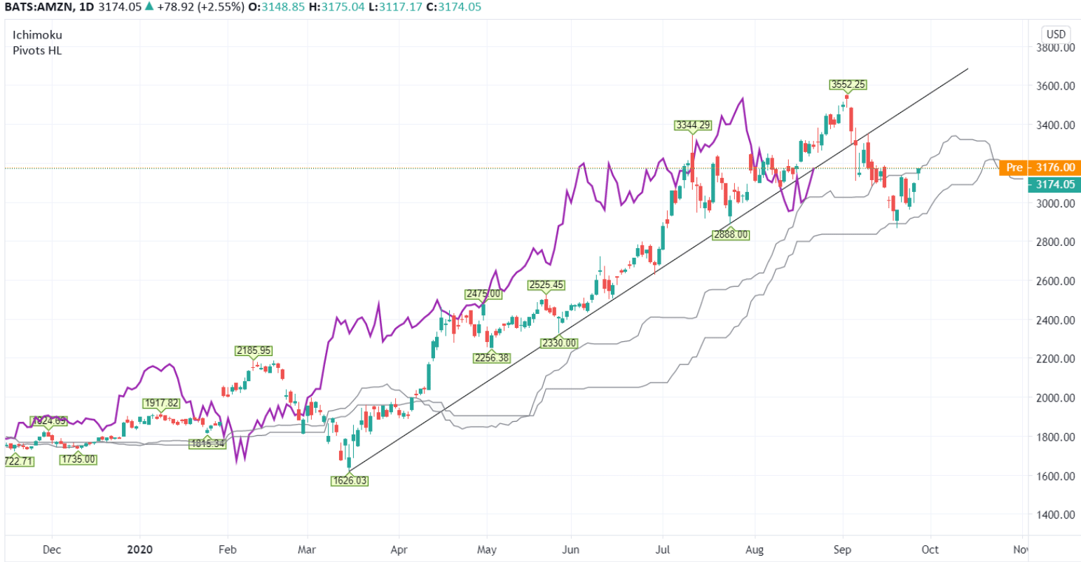 In summary, based on the Ichimoku data, a potential return to the $3,400 region seems reasonable, with key support for the stock located around $2,880 and $3,200, respectively.