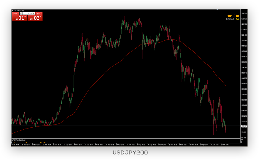 One of the worlds most profitable Hedge Fund Managers Paul Tudor Jones called it in Tony Robbins Money Master Book “my #1 Trading indicator ” and some of my colleagues in institutions and banks have referred to it as a key barometer for where substantial money flow often occurs. I am referring to the 200-Day Moving Average on a Daily chart and as the charts will demonstrate below the 200 MA (moving average) not only has the potential to reverse a currency market but can also be a general guide to where the overall trend is.